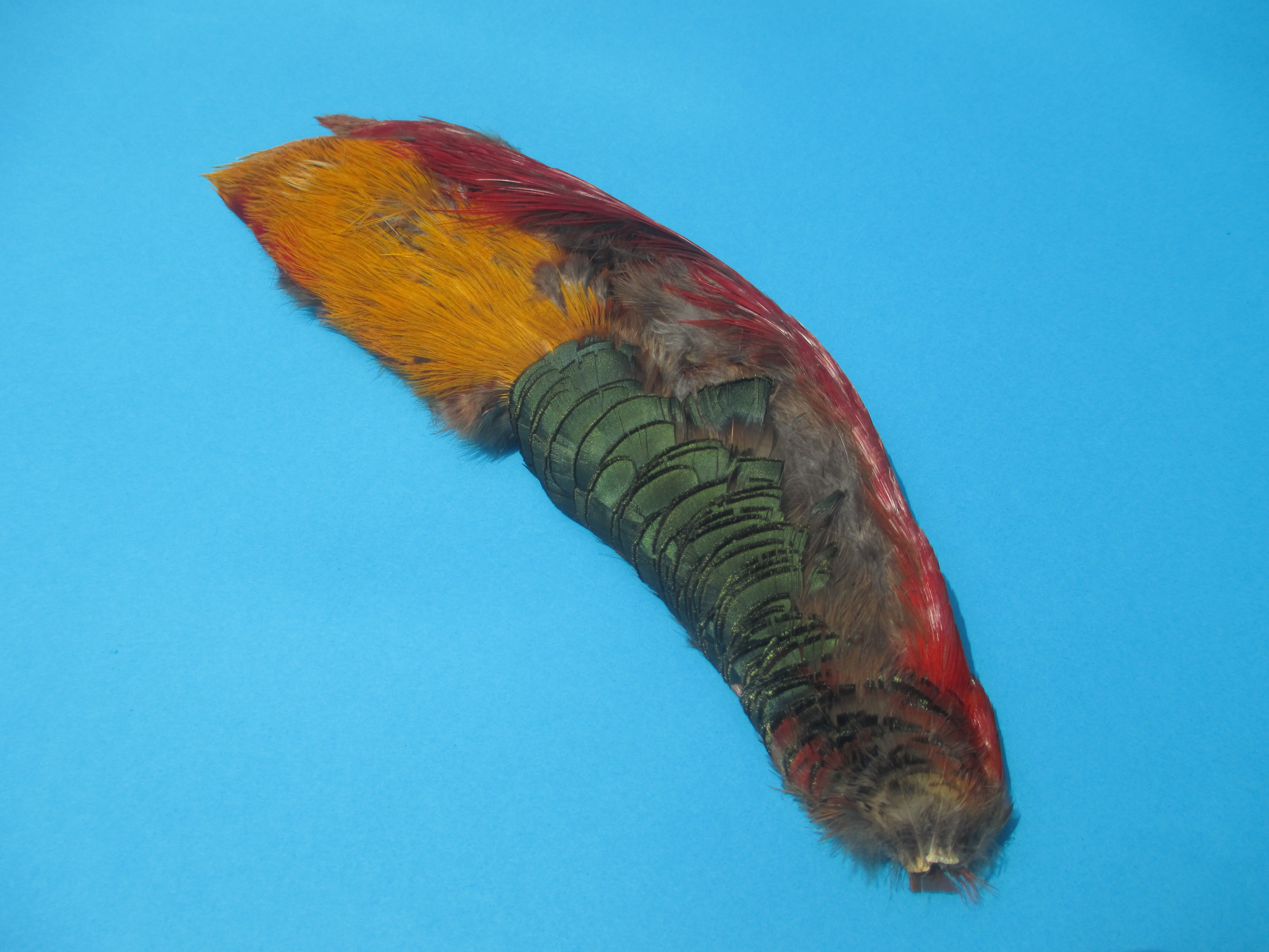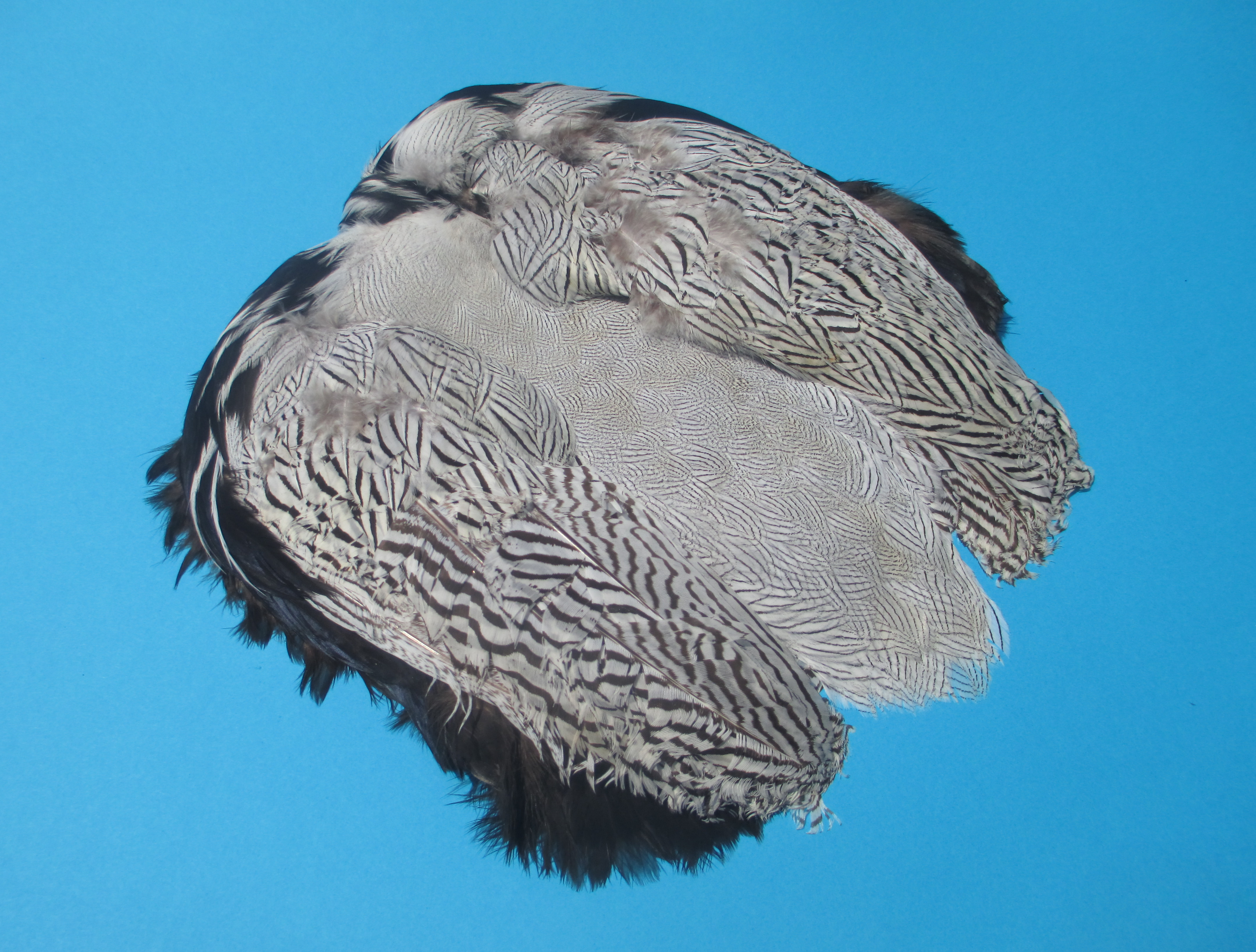 El último factor que influye en un hackle es su genética. Hace muchos años que se crían gallos y gallinas especialmente para el atado de moscas. Se han ido seleccionando aves con características de pluma deseables (largo de pluma, densidad de barbas, color, ausencia de plumón, rigidez de barba, cantidad de plumas por unidad de área, etc.) a lo largo de muchos años. El resultado es una pluma muy distinta que las aves de corral o destinados a alimento. En el mercado de los materiales de atado de moscas hay cuellos y monturas que no tienen esta genética refinada, por lo que son de un precio y calidad  inferior. Estos cuellos y monturas también se rotulan como “importados” (Imported), “chinos” (Chinese) o “hindúes” (Indian). Mi recomendación es evitar los cuellos y monturas de calidad inferior, ya que tendrá que usar muchas plumas más, tendrá menos variedad de tamaños de plumas y las barbas tenderán a ser más blandas y con más plumón. A la larga con un cuello o montura de excelente calidad y genética podrá atar más moscas por pluma y más duraderas. Vale la pena invertir un poco más de dinero en un hackle de calidad y ahorrarse dolores de cabeza posteriores. Terminará comprando el hackle genético de todas formas.