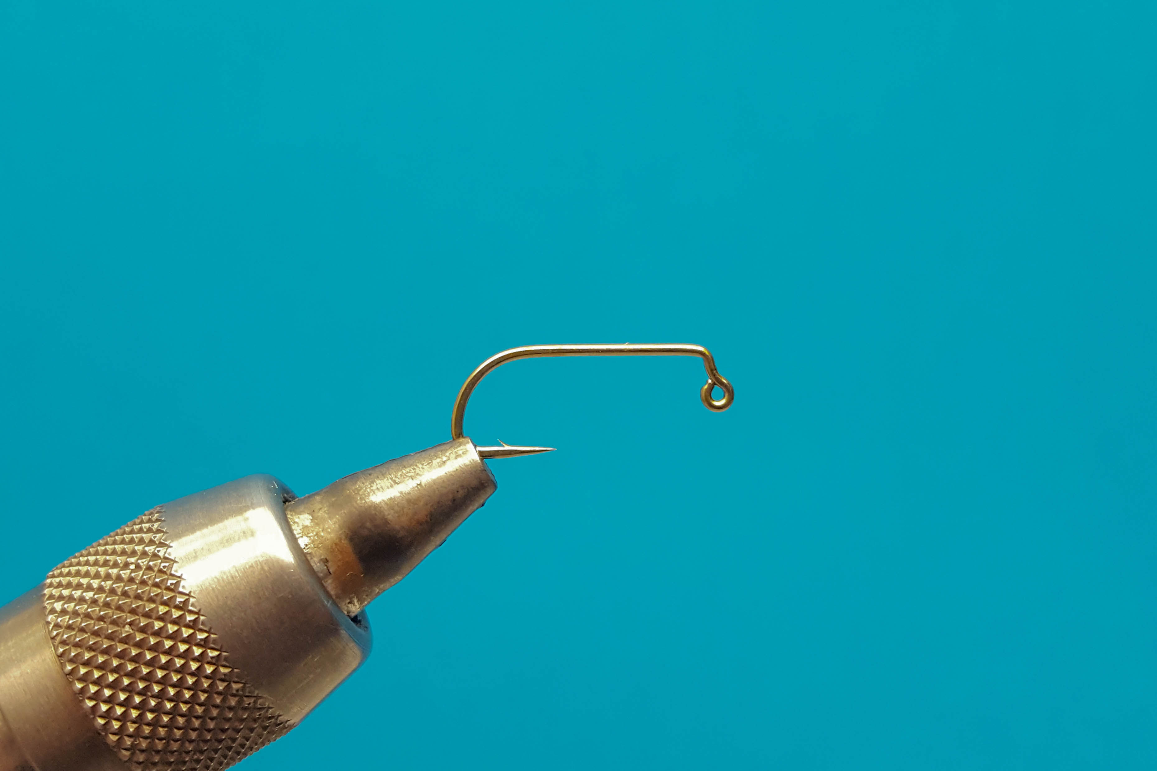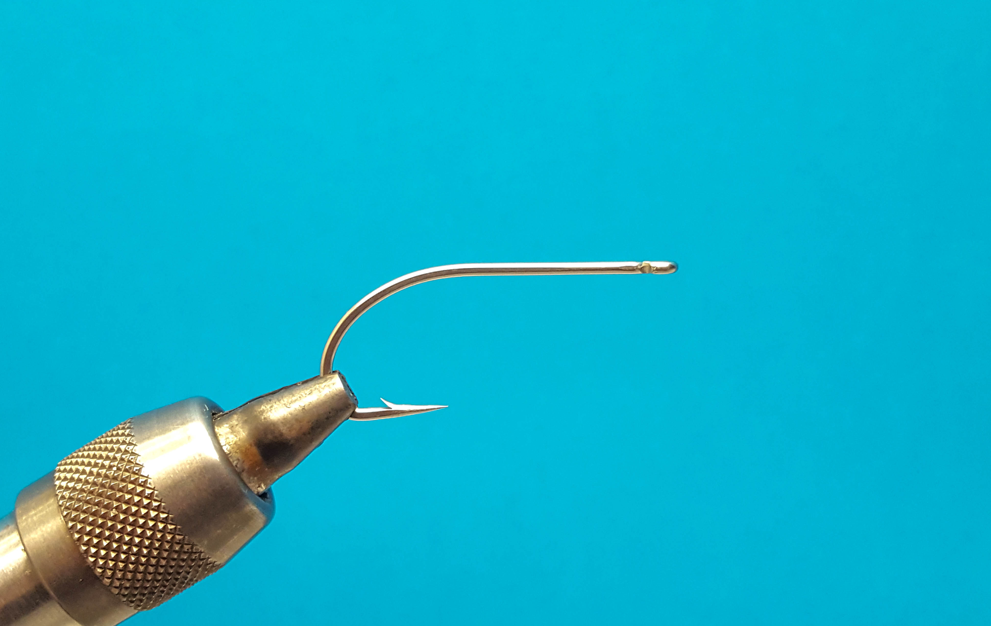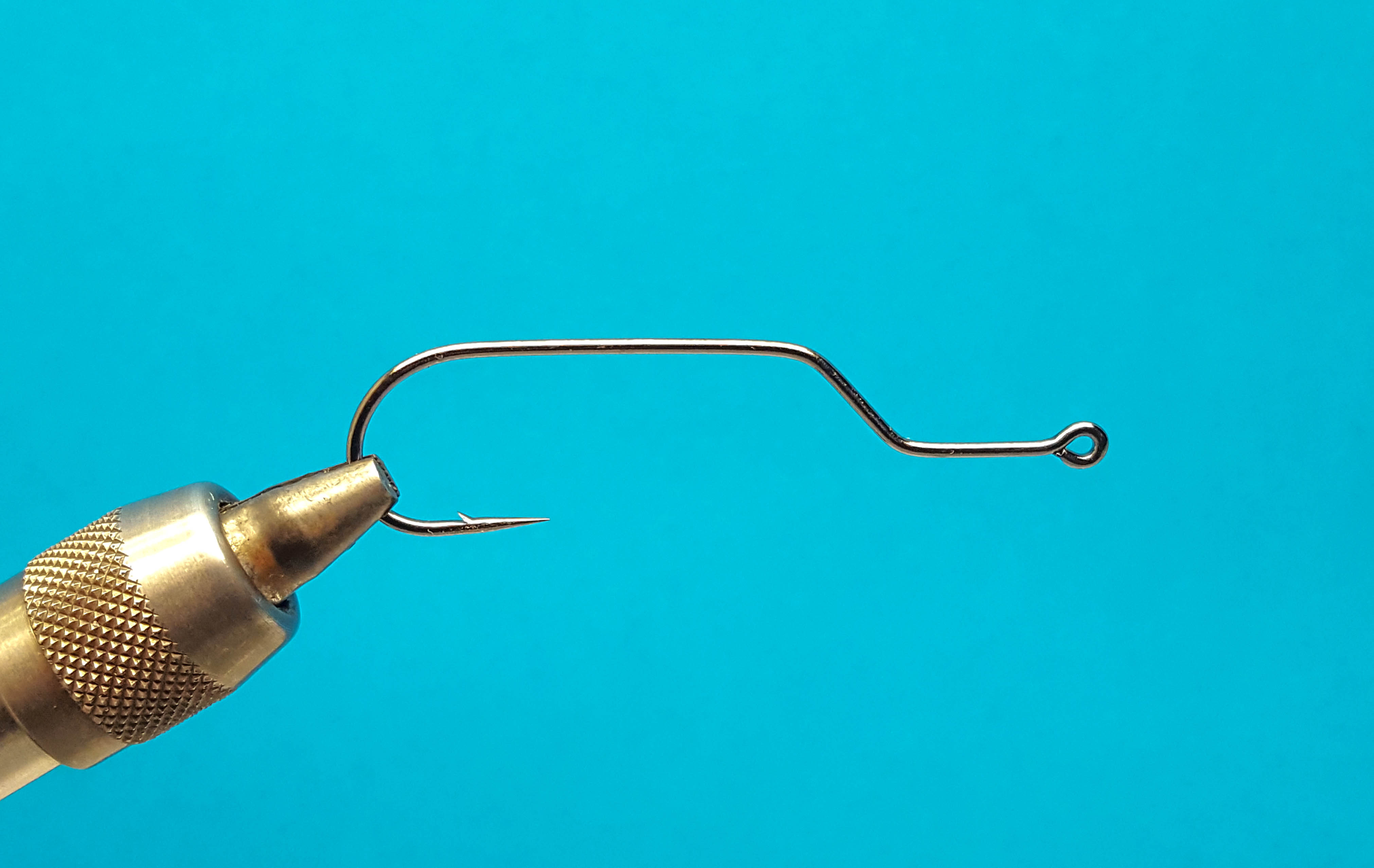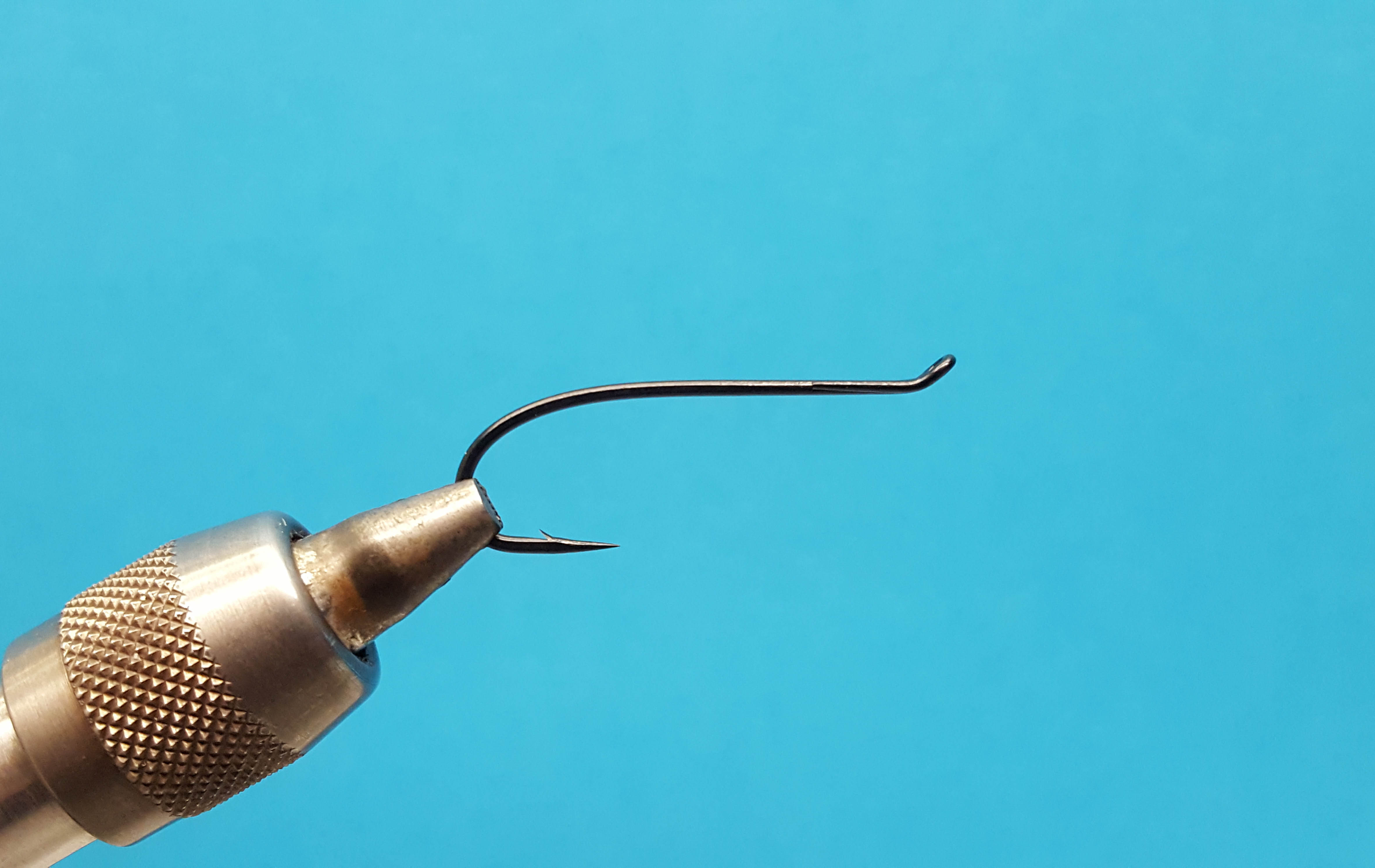 En la parte superior de la fotografía se observa un anudador de alcance extendido (extended reach whip finisher). Un anudador de alcance extendido facilita el nudo final al atar moscas de tipo tubo. (Fotografía: Hans Krarup)