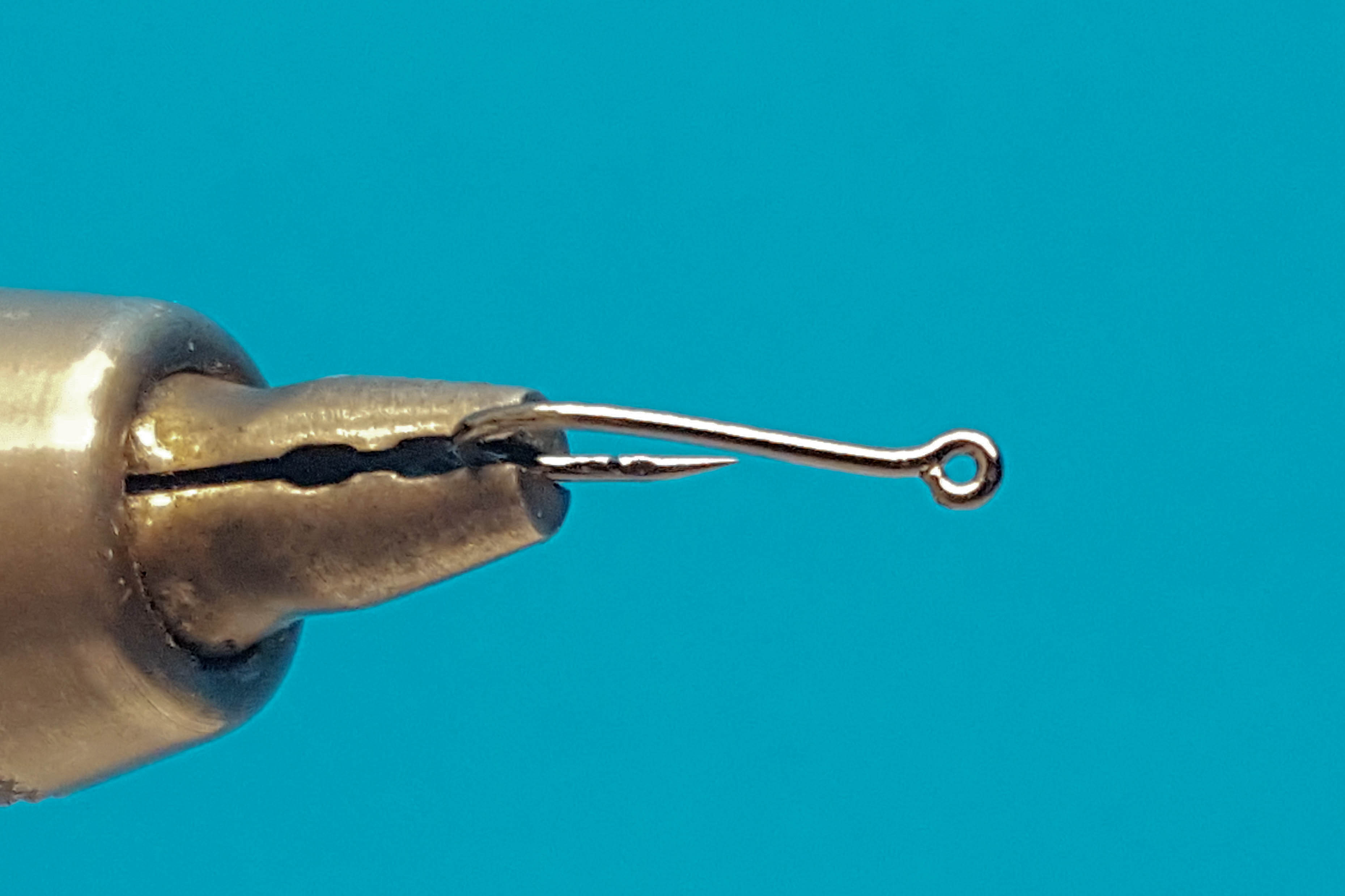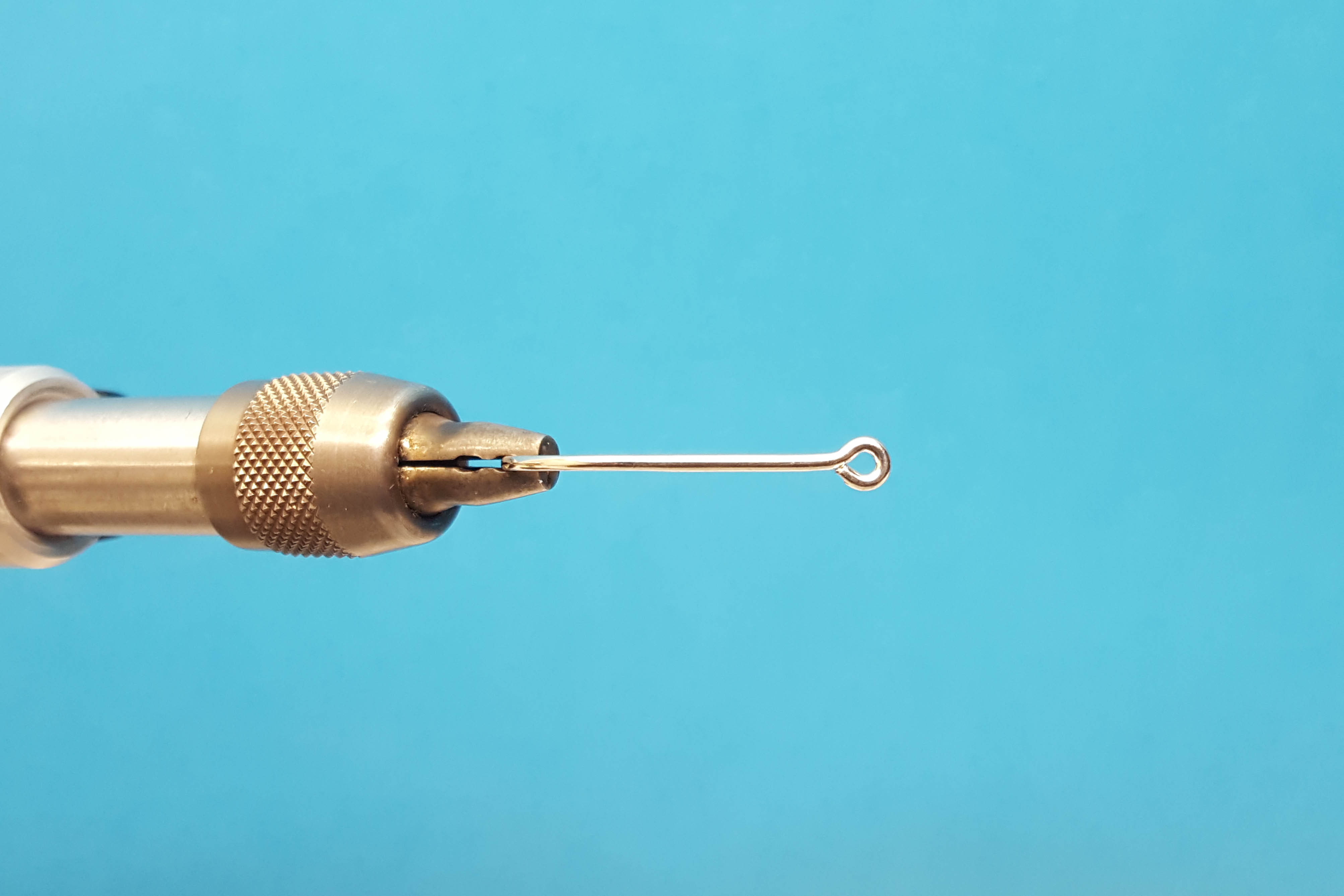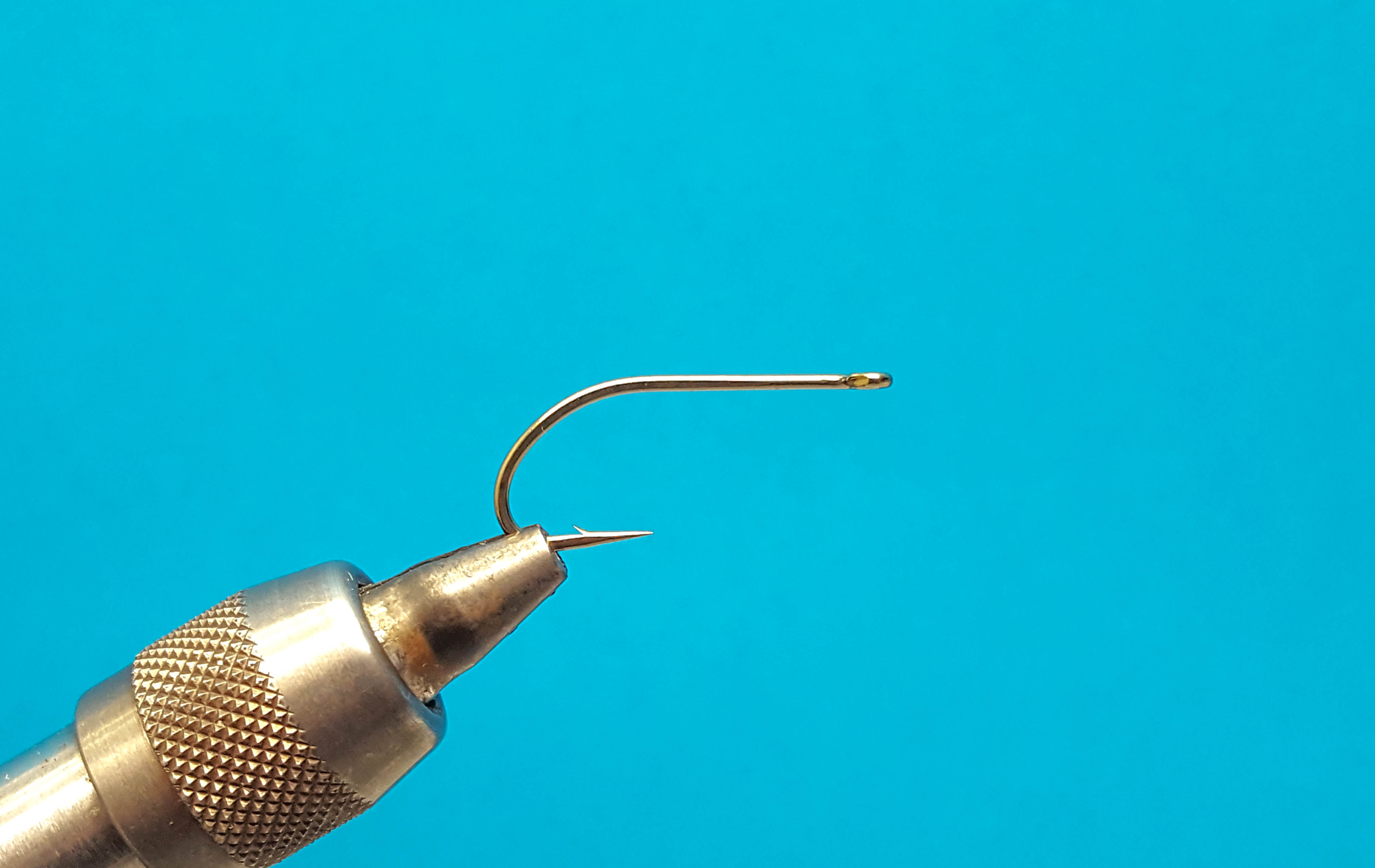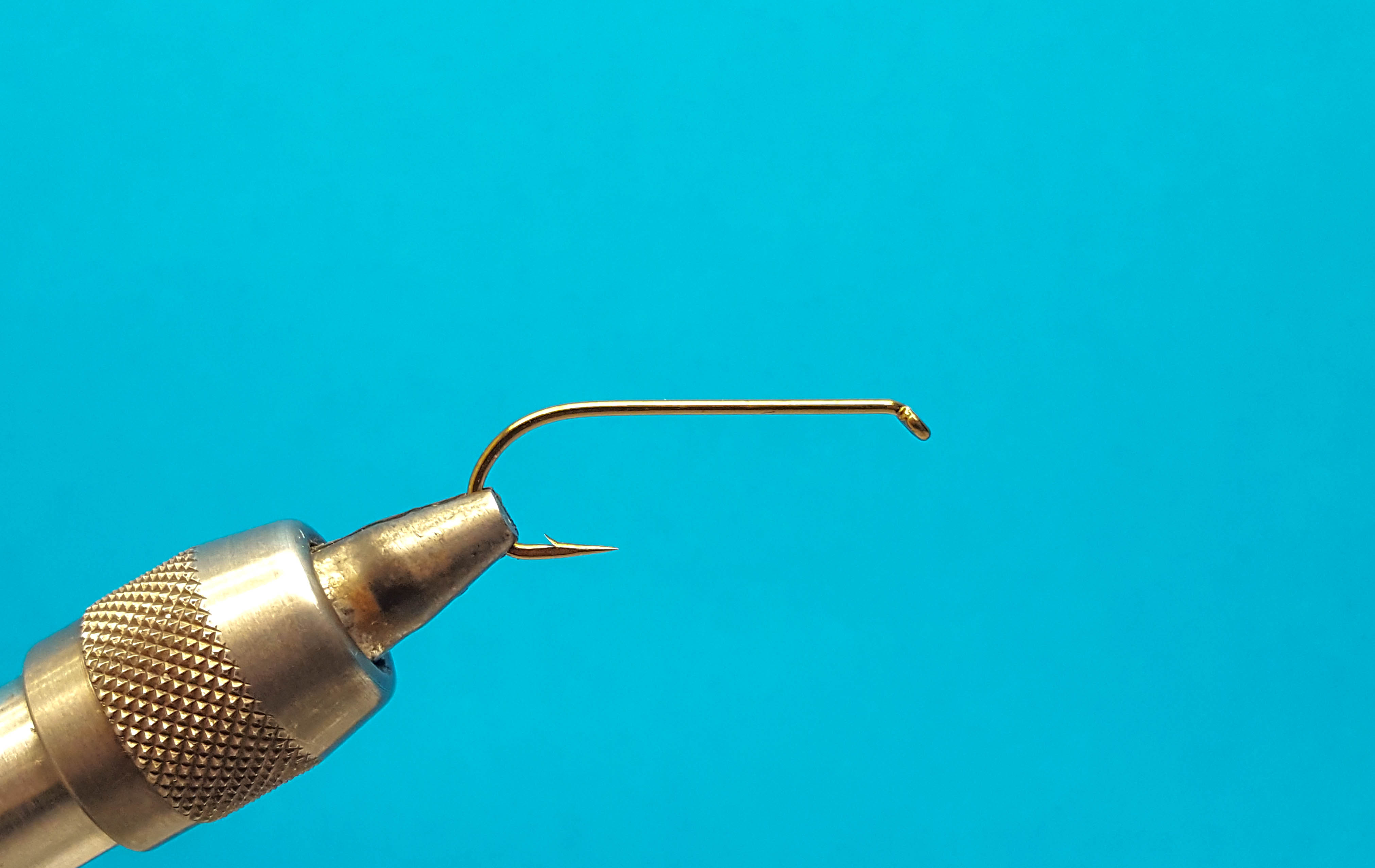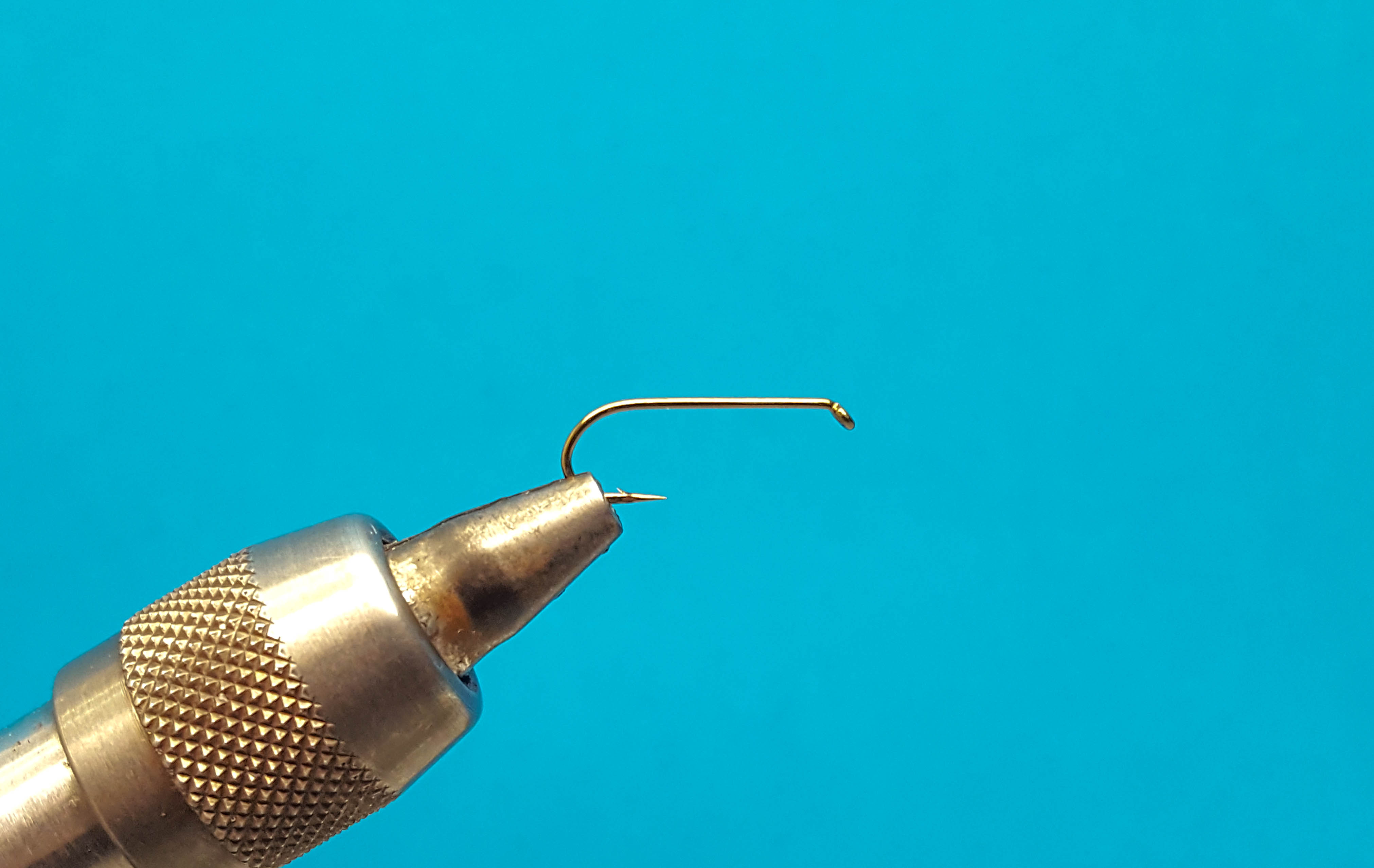 En la parte superior de la fotografía se observa un anudador de alcance extendido (extended reach whip finisher). Un anudador de alcance extendido facilita el nudo final al atar moscas de tipo tubo. (Fotografía: Hans Krarup)