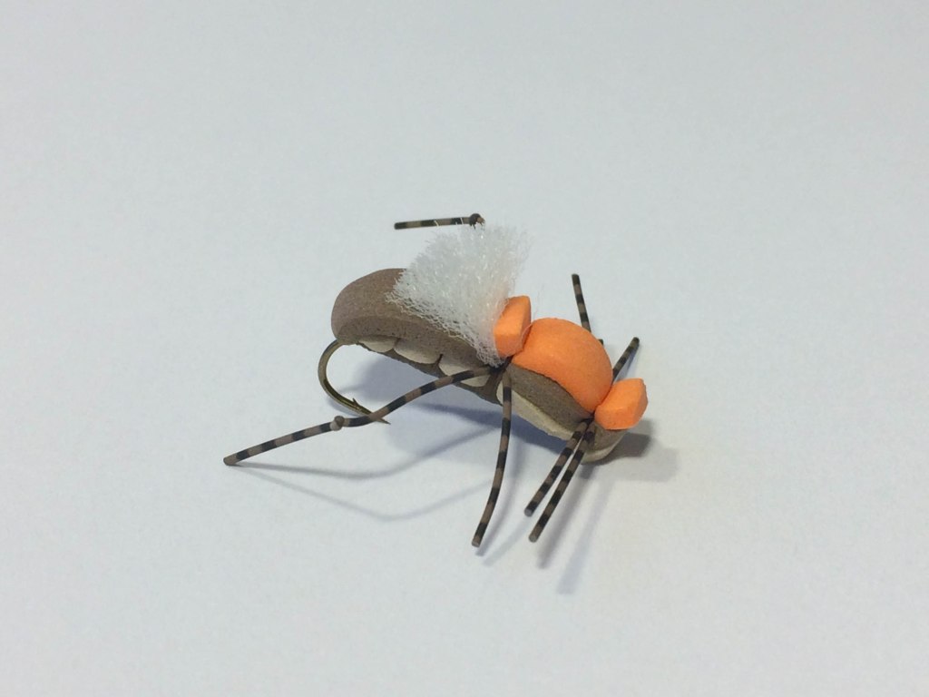No conocía esta mosca hasta que me la presentó un amigo mío llamado Theo Oberli. Juntos hicimos un viaje a la zona del río Baker acompañados de Cristián y Julio Urmeneta. A través de los años hemos formado una bonita amistad con Theo. Estabamos pescando un afluente del lago General Carrera y Theo usó la Fat Albert con una ninfa de dropper. Me sorprendió la flotabilidad de la mosca y su parecido a una mosca que ya conocía y que me daba muy buenos resultados, la Ardillas Beetle. Me gusta atarla en color café (foam de color café claro con café oscuro) y color negro (foam de color negro con naranjo) imitando a la combinación de colores de la Ardillas Beetle. Es una mosca simple de atar y que puede atarse en muchos colores. También se puede variar el color del indicador (yo uso lana de polipropileno) para poder ver la mosca mejor bajo distintas condiciones de luz.