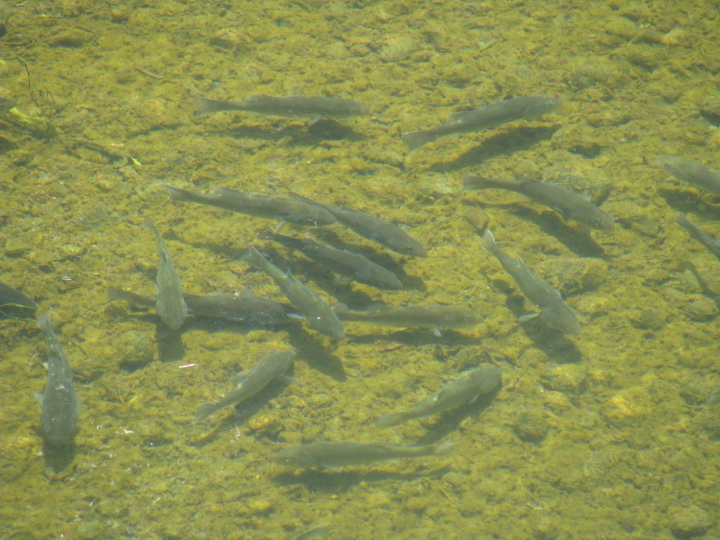 También hace varios años cambió el curso del río y el pozón no tiene una comunicación tan marcada salvo en invierno en época de aguas altas cuando entra por la salida del pozón. El agua de la vertiente es limpia y fría, incluso en verano tiene temperaturas cercanas a los 14ºC, distinto del río que es más tibia y turbia. De orilla a orilla hay aproximadamente 15 metros, longitud de aproximadamente 200 metros y una profundidad máxima de 3 metros en época de verano. Con frecuencia al salir a recorrer el campo llevo un par de pequeños binoculares los que portaba en esta ocasión. Miré hacia la orilla opuesta y entre las sombras de los aromos, vi un destello metálico bajo el agua y después de unos segundos, otro más. En el lado que estaba parado hay un acantilado de aproximadamente unos 3 metros hacia el agua. No estaba tan lejos de los destellos, pero aun con los binoculares no veía muy bien que cosa los provocaba. Había una sombra oscura del fondo del río con un espesor de unos 50 cm. De pronto la mancha oscura cobró movimiento y me di cuenta que eran muchos peces de un mismo tamaño y huyeron hacia el otro extremo del pozón. La salida del agua era muy bajo en esa época del verano por lo que no podrían salir. Se había ido el sol y la visión era difícil. Volvería el próximo día pero tuve que calmar mi ansiedad por saber de que peces se trataba. Tenían la forma y el tamaño de una trucha, pero eran de un color demasiado oscuro. Nunca había visto un cardumen de peces en ese pozón y menos de semejante tamaño.