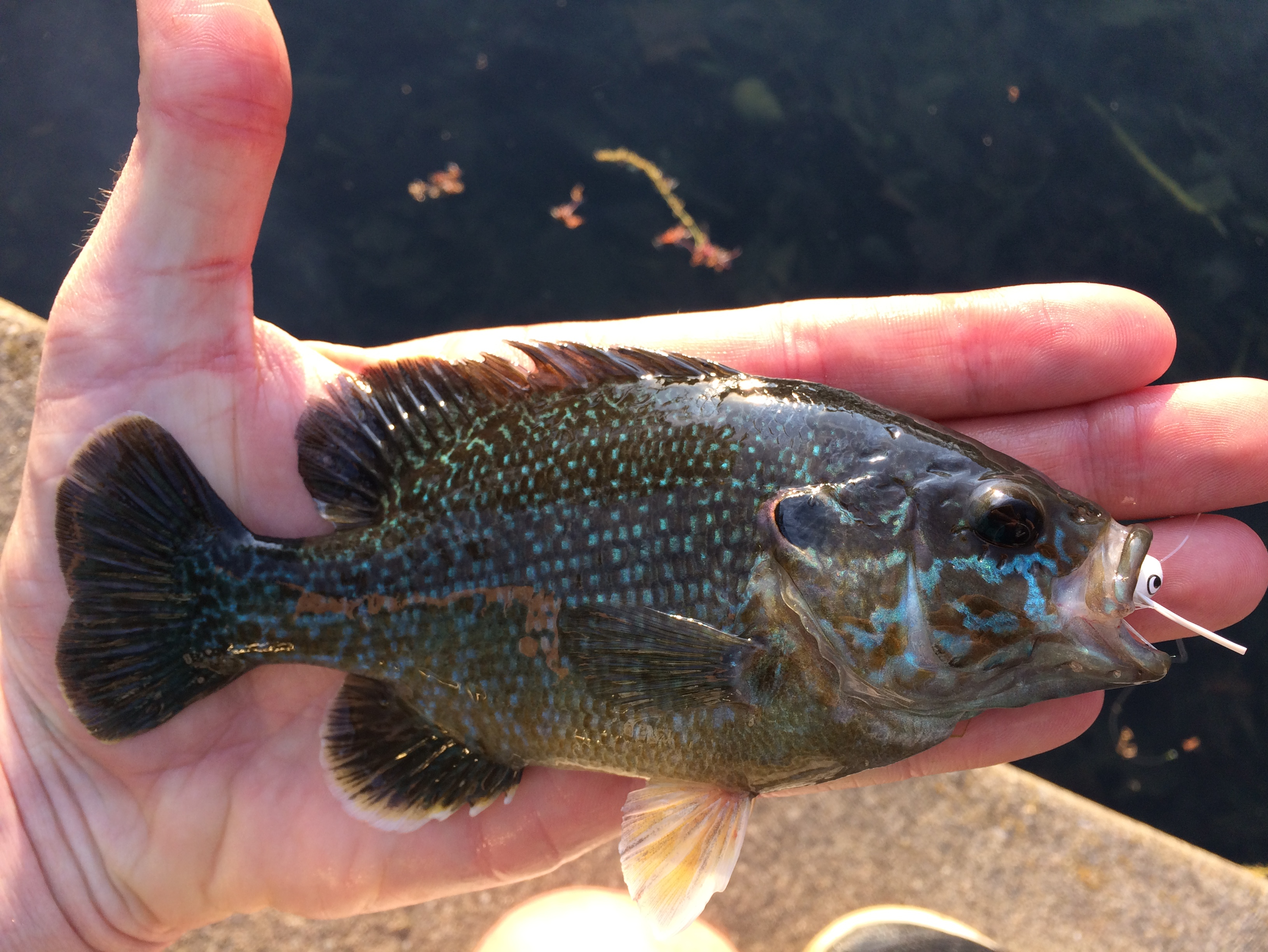 Nota: Generalmente refiriéndose a especies tales como Crappie, Perch, Bluegill, Pumpkinseed, etc. Especies de agua dulce de Norteamérica que no superan el tamaño de un sartén. En la fotografía a continuación, un Bluegill que pesqué con una mosca tipo popper pequeña. La siguiente foto es de un Crappie que pesqué con un popper de color naranjo.