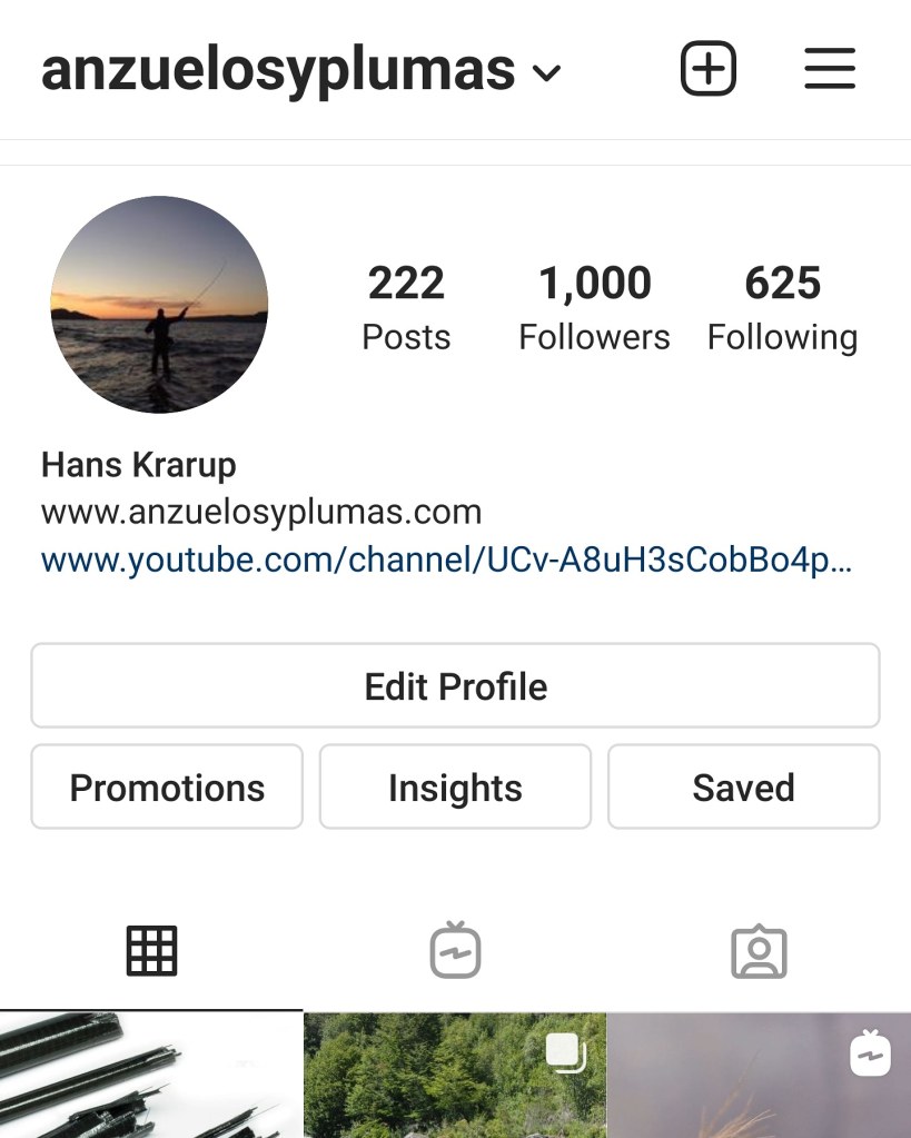 Gracias a todos los que han seguido a la cuenta de Instagram de anzuelosyplumas.com. Hoy llegamos a 1000 seguidores en estos tres años de proyecto. Seguiremos tratando de ser un aporte a la pesca con mosca en español y para todos los que quieran aprender. Gracias a todos por ser parte de este proyecto y sueño. – Hans